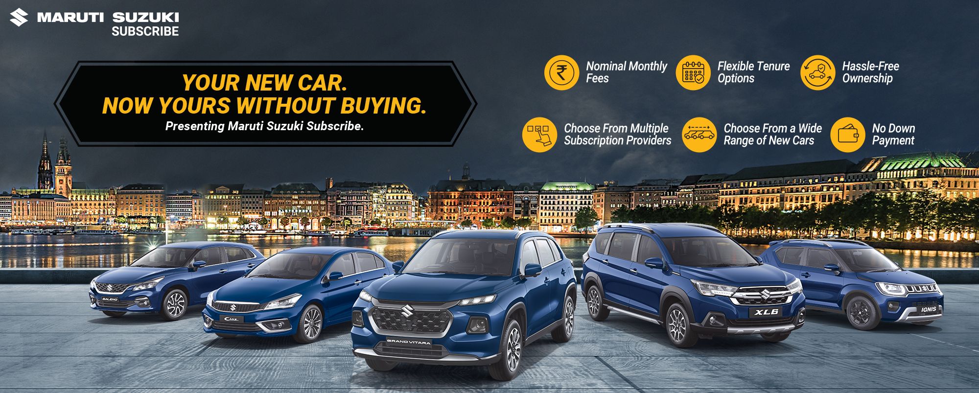 Maruti Suzuki Subscribe enables all customers to enjoy driving their preferred Maruti Suzuki cars without having to deal with all the financial responsibilities that come with owning a car.All you need to do is opt for a monthly subscription plan at a fixed monthly fee, which includes the routine maintenance and insurance costs, and choose a flexible tenure. At Aadhi in, , Salem Bypass Rd, all Hatchback, Sedan, SUV, the MUV models line-up includes Baleno, Invicto, EVitara, Jimny, Ciaz, Ignis, Fronx, Grand Vitara, XL6. Here, you will enjoy Maruti Suzuki Subscribe benefits such as: